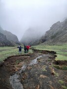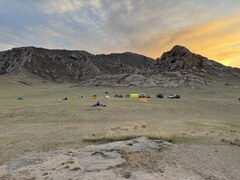Хмурое утро, горы в снегу. Едем с надеждой оказаться в курортной части Монголии – в пустынных и горячих песках. Сворачиваем с асфальта и оказываемся у подножья великолепной белой скалы, заросшей цветущим миндалем. Погода налаживается. По пути посещаем заброшенный монастырь, пещеру. И встаем на первую ночевку в каменном городе, среди причудливых скал. Всю ночь ветер треплет палатки. Утро жаркое. Все дорвались до отдыха – у кого утренняя пробежка, у кого цигун, кто-то полез в горы или встал для утреннего фото рассвета. Дальше выезжаем опять на асфальт и едем уже на восток в местность, где простирается каньон красно-желтых оттенков с крутыми подъемами и грандиозными промоинами. Первая поломка и ночевка в незапланированном месте - просто в степи, по соседству с ящерицами и монгольскими пищухами. Опять шквальный ветер, тучи. Дальше город, жара, закупаемся продуктами, тучи сгущаются. За городом простирается хребет "Три прекрасных", но пока он своего названия не оправдывает. Чем выше мы забираемся на перевал, тем дождь усиливается. В кемпинг приезжаем в темноте. Утро встречает нас плотной облачностью и дождем. "Да, наверно в ясную погоду здесь красиво" думаем мы. Не смотря на невзгоды погоды, идем на разведку в ущелье Белого грифа. Виды шикарные: наледи, промоины, альпийские луга, цветущие растения, зловещий туман и конечно дождь. К вечеру дождь превращается в снего-дождь, а потом и в снег. Устраиваем дневку.