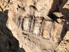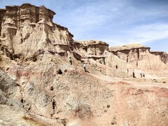 Мчим по песчаной извилистой дороге, точнее есть направление, дороги нет, она у нас просто в голове. Вокруг причудливые камни, горные хребты, уходящие в горизонт и сливающиеся с небом. Внезапно машина начинает буксовать, скрипеть и мы садимся глубоко в песчаную яму. Сначала пытаемся вытолкать машину своим экипажем, но четыре хрупкие девушки переоценили свои возможности. И только после подоспевшей подмоги, коллективно, удалось машину вытолкать из зыбучих песков, раскапывая колеса. Внезапно появляется предложение, не возвращаться сразу на трассу, а заехать ещё в одно местечко неподалёку, где недавно работали палеонтологи и попробовать поискать место их стоянки и раскопа. Бесконечно ныряя из одной канавы в другую, мы наконец-то находим примерное направление, по которому нам нужно пройти ещё два километра пешком. Смотрим вдаль и понимаем, что путь будет не простым. Впереди простирается гигантский каньон с размывами от 20-50 метров в высоту. Мы начинаем гонку за монгольскими сокровищами. То спускаясь на дно размытых водой расщелин, то карабкаясь по песочным откосам, все в поту и под пилящим солнцем, неутомимо идём с надеждой нового открытия. Таких обрывов и подъёмов пришлось преодолеть несколько. И какова была наша радость, когда кто-то из толпы крикнул: «Нашёл!»