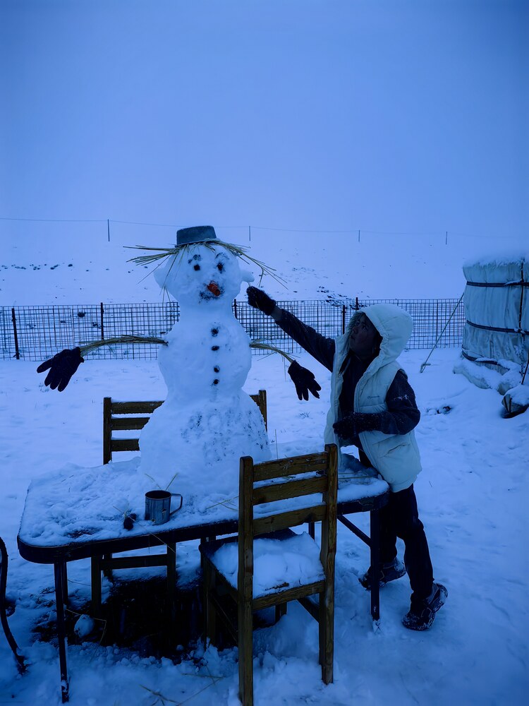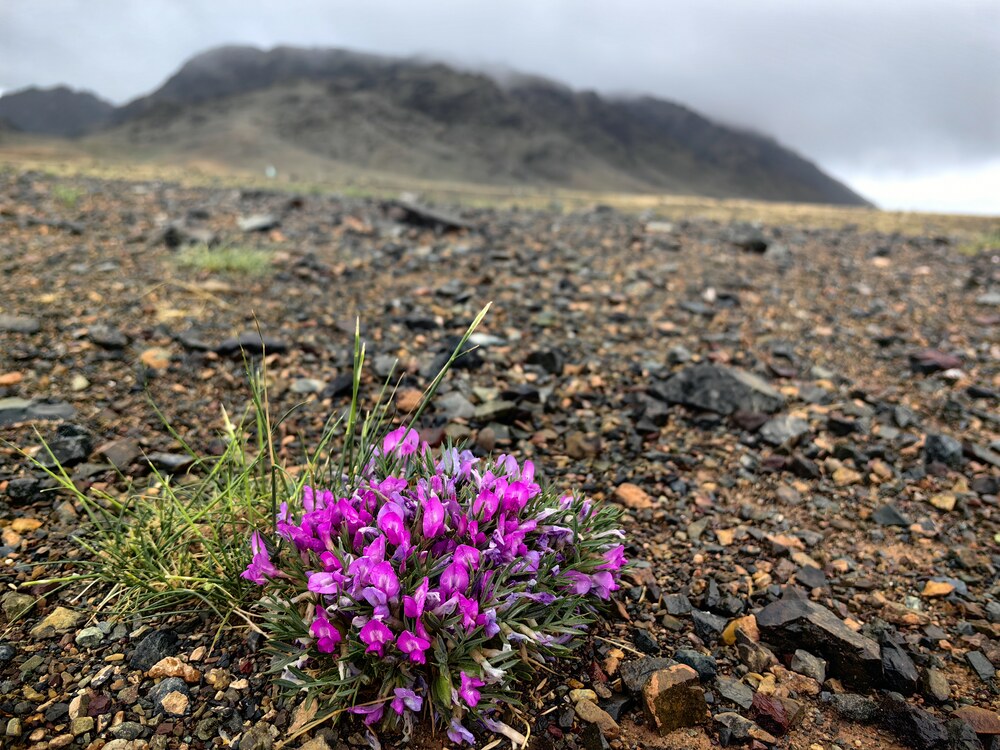 Все не вечно, не вечен и снег. Позавтракав бараньей лопаткой, а кто-то кашей отправляемся в путь. «Три прекрасных» провожают нас туманом и легкой моросью. Спускаемся по заснеженной каше с перевала и попадаем на зеленые, сочные пастбища, украшенные вдоль дороги цветущими ирисами. Даже не автомобильной заправке цветут цветы. Дальше начинается адские кочки (это мы свернули с асфальта) и нам кажется, что это, «то самое» бездорожье. По пути верблюды, колодцы, скудная степь и дождь.