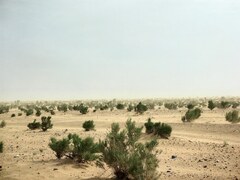 Глухой и протяжный шум нарастал с запада. Внезапно налетел крутящийся вихрь и со свистом начал нести песок, закручивать его в маленькие смерчи. В этот момент мы обрадовались, что лагерь уже собран, а сами сидим по машинам. В какой-то момент все потемнело вокруг, и машины провалились в желтый туман. Ветер шумел и просачивался сквозь веточки саксаула и сквозь самые маленькие кустик колючки. Травы прилизало ветром, а жесткие колючки стояли как вкопанные. Вот почему они такие суровые и колючие!